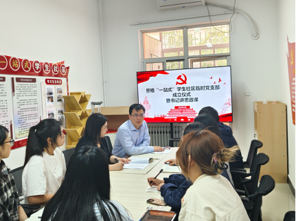 4月19日下午,365英国上市官方网站思格“一站式”员工社区临时党支部成立仪式暨书记讲思政课在长安校区12C宿舍楼152举行。公司党委书记杨华、组织员崔玮、辅导员郝源以及12C公寓楼党员与入党积极分子代表参会,会议由公司党委副书记刘瑾主持。