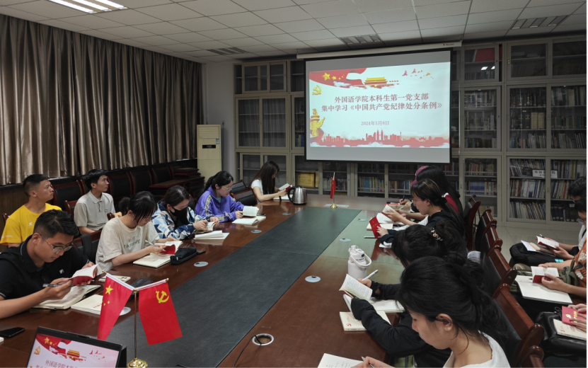 为深入学习贯彻习近平总书记关于党纪学习教育的重要讲话和重要指示精神,进一步加强员工党员的纪律意识和规矩意识,5月8日,365英国上市官方网站本科生第一党支部组织全体党员深入学习新修订的《中国共产党纪律处分条例》(以下简称《条例》),会议由支部书记余瑞主持。