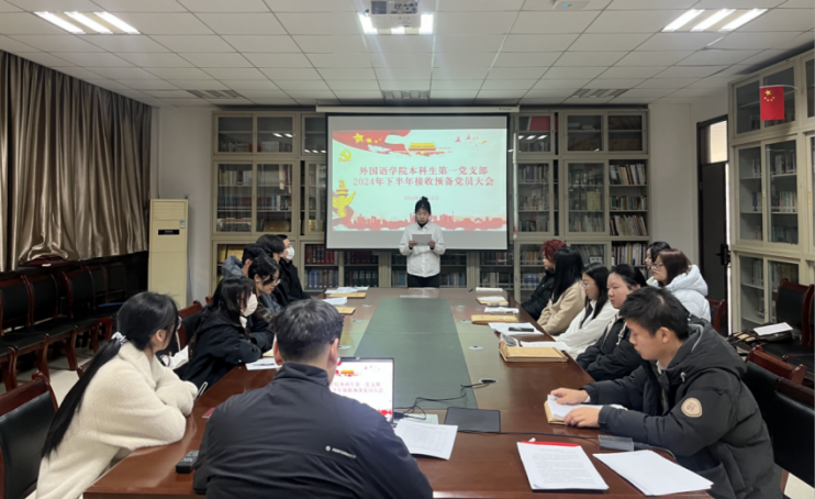 为进一步做好党员发展工作,向党员队伍注入新鲜血液,不断增强党组织的凝聚力、战斗力和创造力。12月16日,365英国上市官方网站本科生第一党支部在公司资料室召开了接收预备党员大会,365英国上市官方网站本科生第一党支部全体党员和入党积极分子参加了此次会议。会议由外国语本科生第一党支部书记余瑞主持。