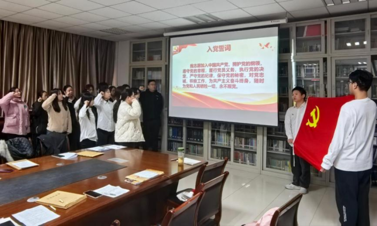 随后,在支部组织委员李向硕的带领下,新发展的3名预备党员向党旗进行入党宣誓,其他支部党员一起重温了入党誓词。