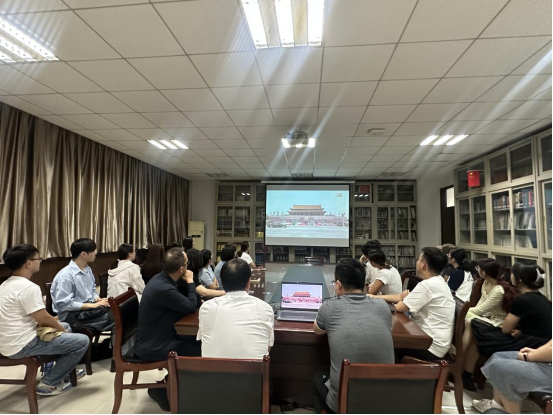 直播中,受阅方阵步伐铿锵彰显军威,先进装备列阵展现国力,一幕幕画面让在场师生员工深刻感受到革命先烈铸就的民族精神,以及新时代国家发展的强劲底气,阅兵式不仅是对历史的铭记、对先烈的致敬,更激发了师生员工的责任担当。