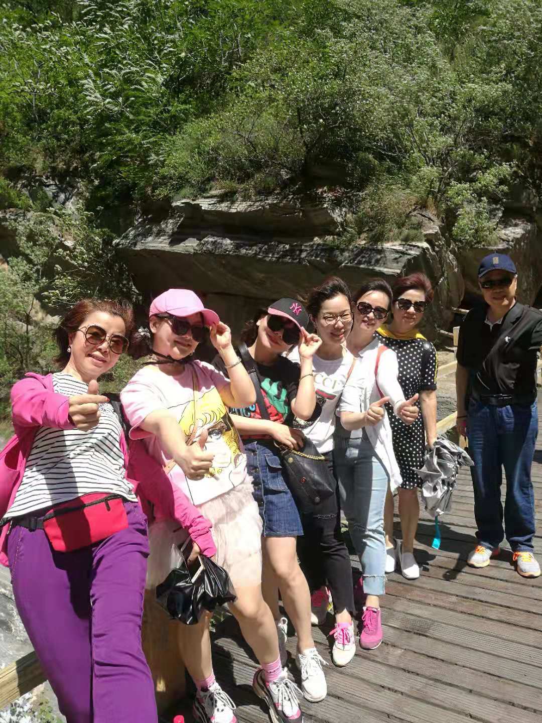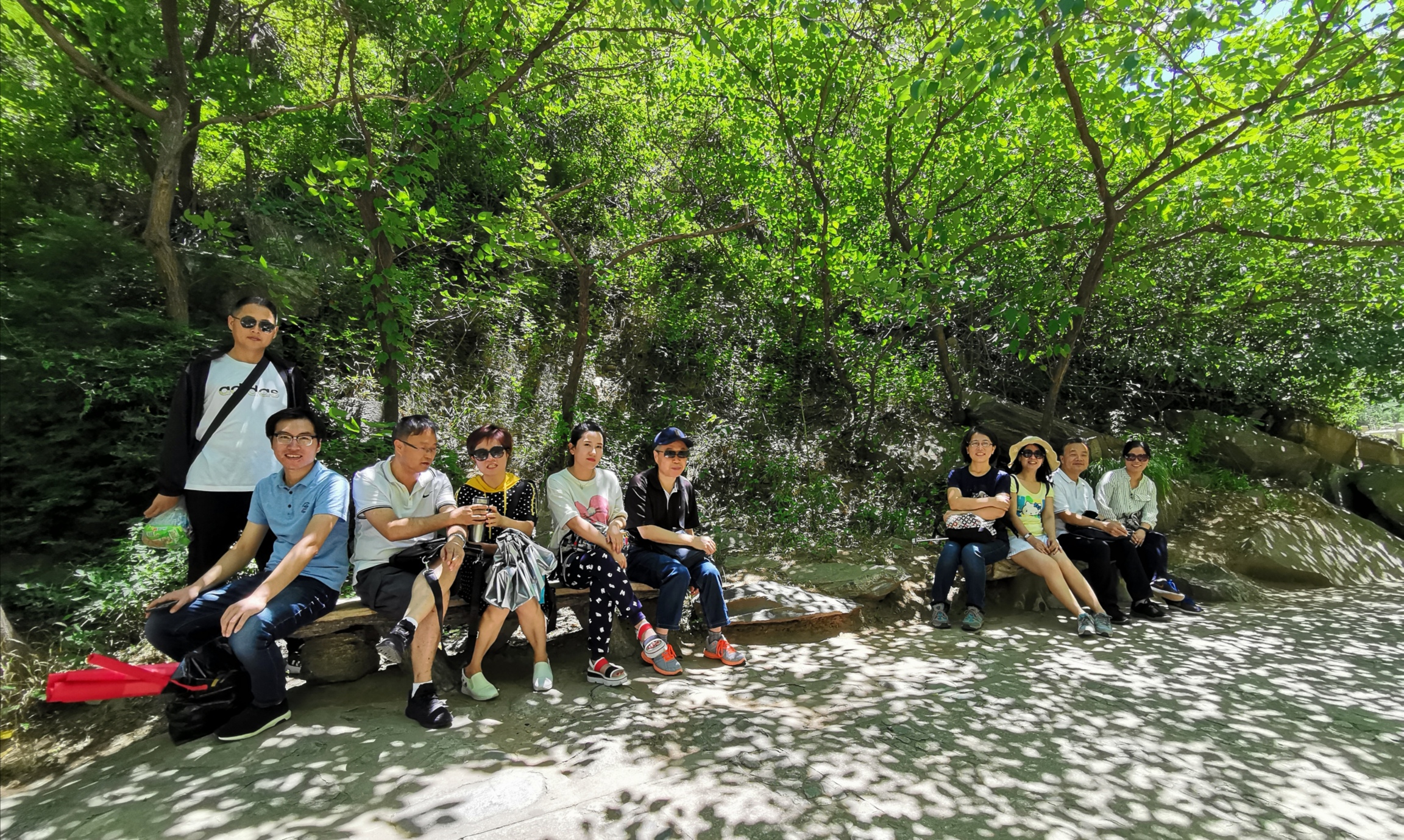 到达仙峪,姜书记强调安全和其他注意事项后大家顺着崎岖蜿蜒的山路向指定地点出发。仙峪,又名车箱谷,在华山峪西,与华山峪仅一岭之隔。夏日的仙峪满目青翠,重峦叠嶂,山谷两侧山石险峻,谷中河流湍急,风景秀丽。一路上,大家欢声笑语,氛围格外轻松,时而快步前进,时而驻足观景拍照,抑或到浅水湾掬一捧清澈的河水纳凉,工作的紧张和压力在此得到了尽情的释放。攀爬过程中,大家团结友爱、互帮互助、相互扶持。经过近一个半小时的攀爬,大家陆续到达了山顶的逍遥亭。蓝天、青山、凉亭、笑脸,构成了一幅唯美的画面,大家纷纷拍照留念。