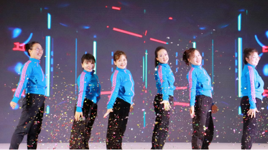 公司员工代表队共有20名女生组成,她们身着活力服装,步伐身姿轻盈、富有朝气;她们舞动着手中的花球,不断变换队形,旋转、跳跃,以轻快的步伐,灵动的舞姿展现出当代老员工的自信与魅力。
