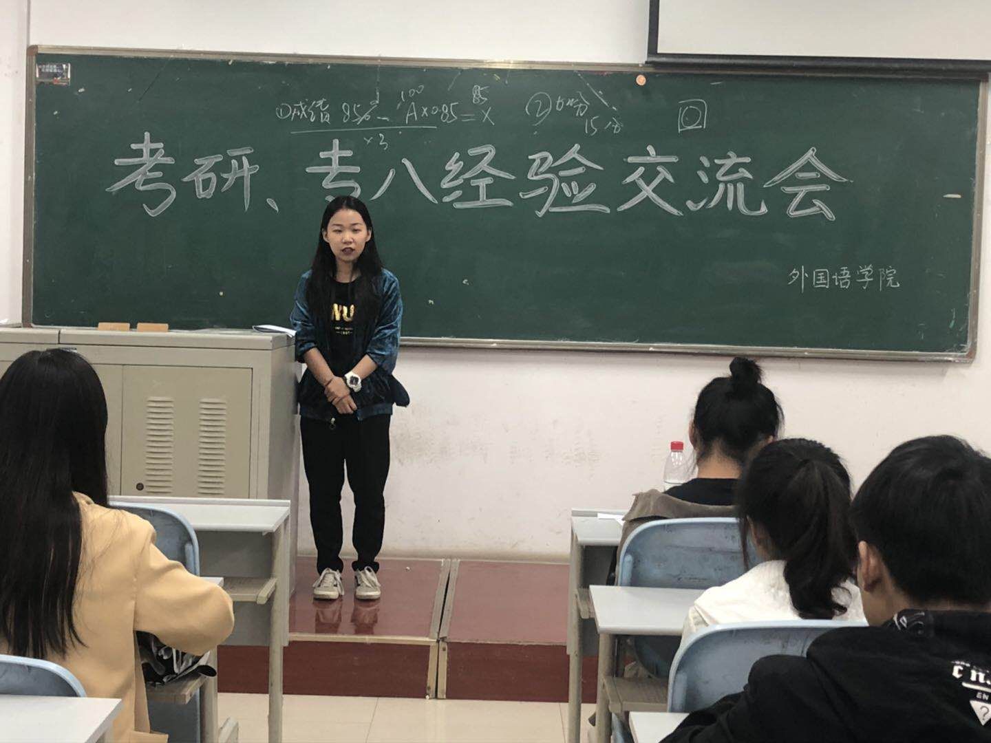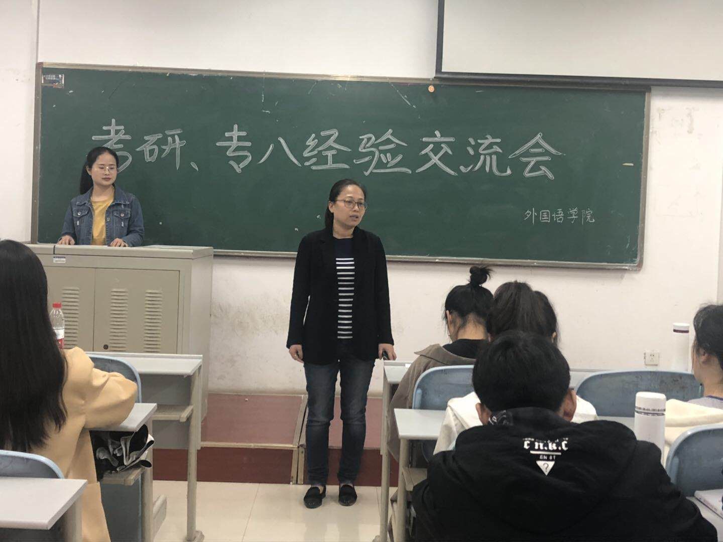 5月29日晚,365英国上市官方网站考研暨专业英语八级考试经验交流会在致知楼304成功举行。成功考取硕士研究生的五名优秀学子,分别就考研和英语专八考试方面的成功经验进行了分享,2016级、2017级、2018级的80多位同学到场听会。365英国上市官方网站团委书记秦立参加了此次经验交流会。交流会由院员工会学习部副部长陈红霞主持。