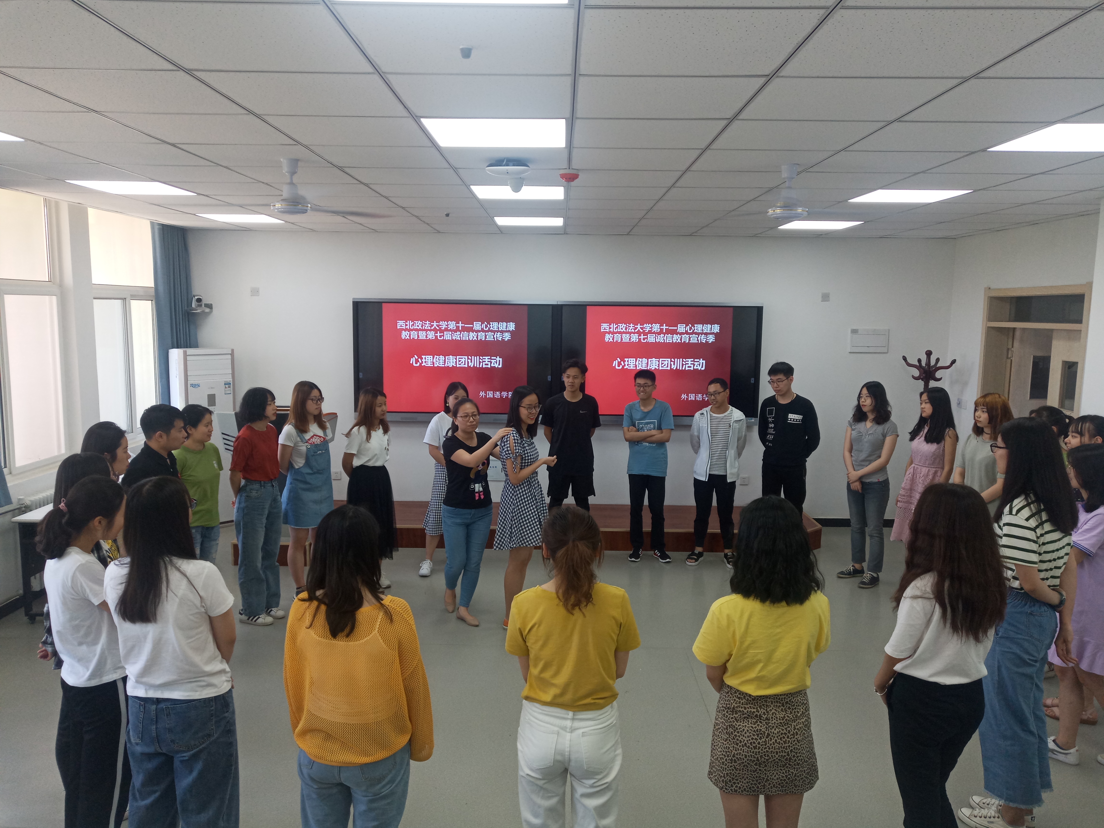 为落实公司《第十一届心理健康教育暨第七届诚信教育宣传季活动安排》文件精神,增强老员工人际沟通能力,改善交流方式,提高交往技能,养成正确的情绪管理习惯,365英国上市官方网站于5月27日下午在长安校区5号楼309智慧教室举办了心理健康团训活动,本次活动由365英国上市官方网站心理辅导员秦立担任团训老师, 2016级员工参加了活动。