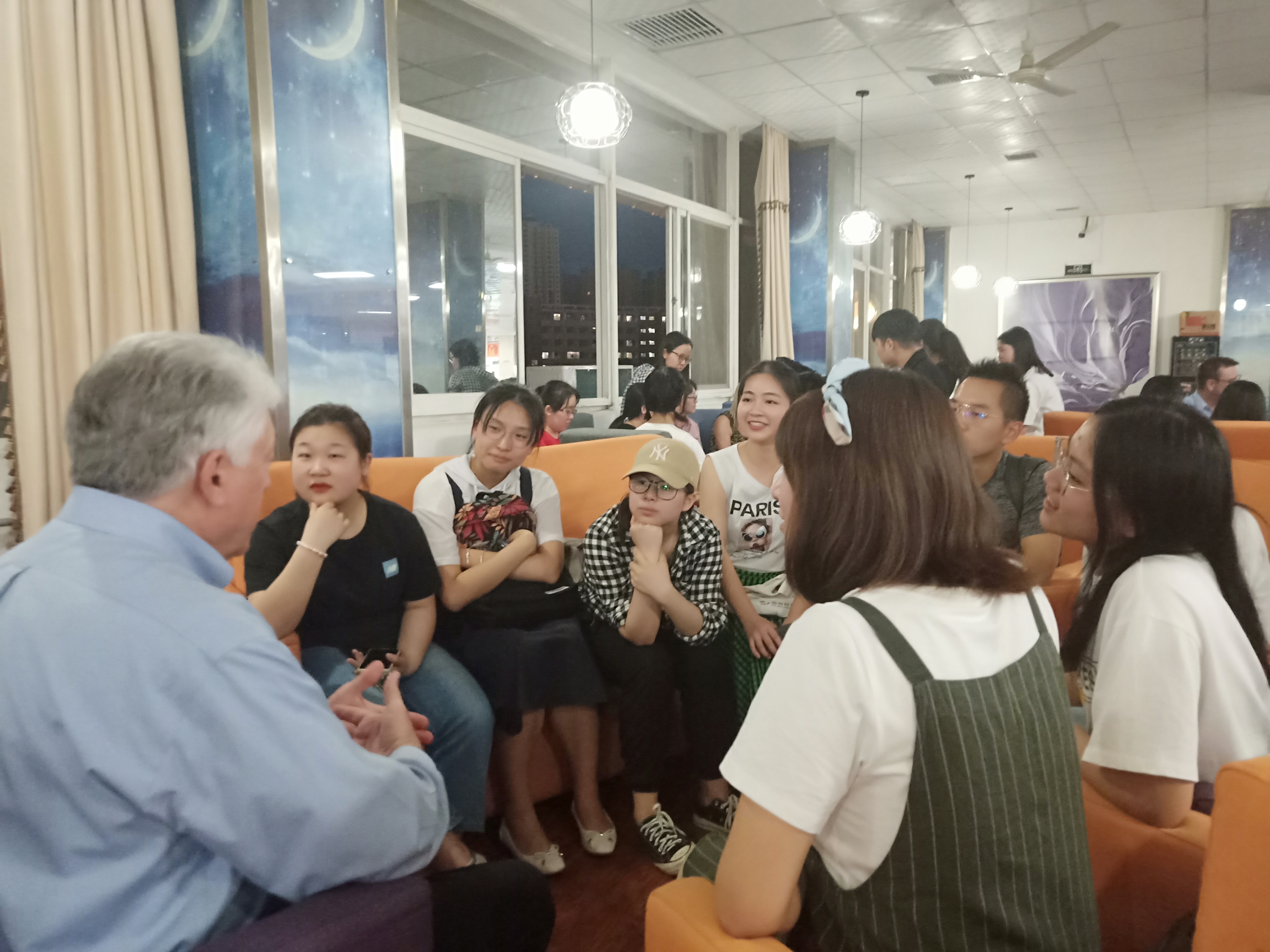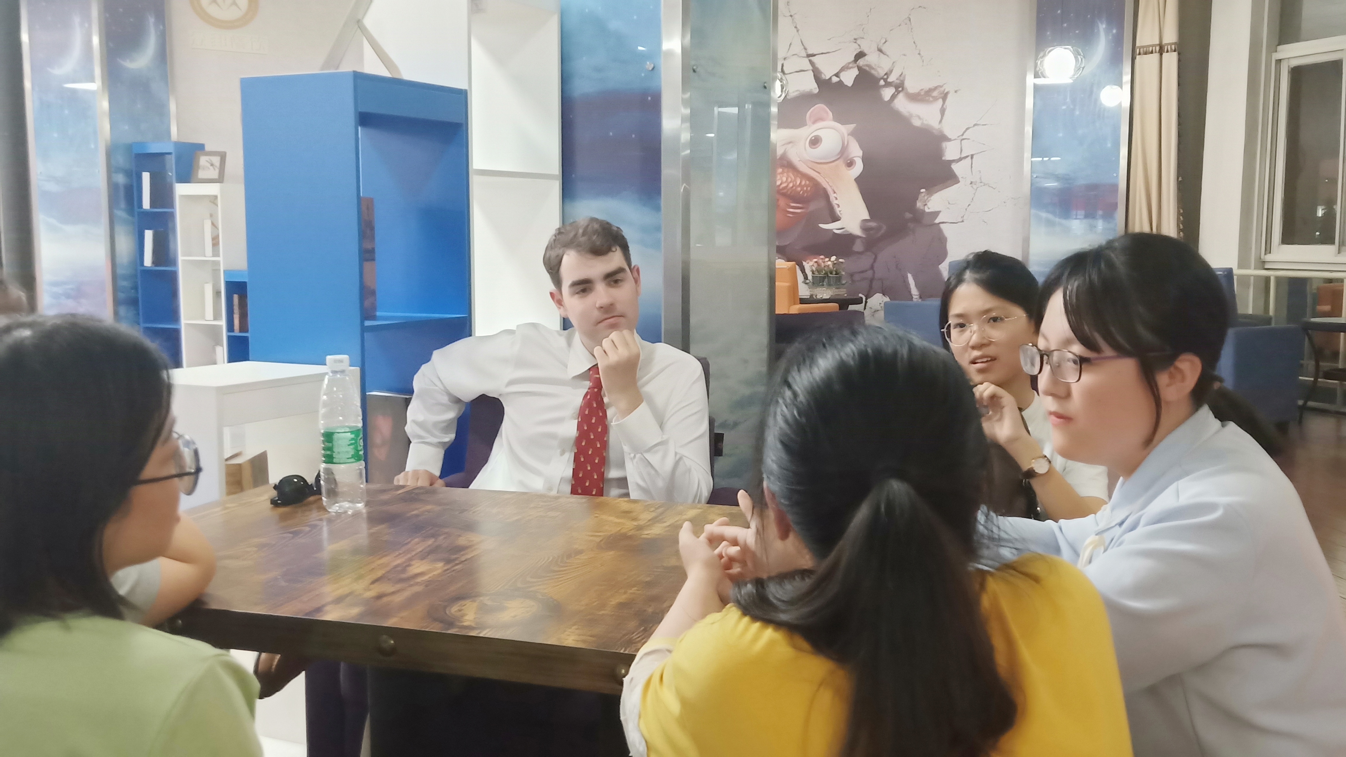 深入了解中国文化,才能忠实、全面、有效地向世界传播中国文化。为适应新时代对老员工英语能力需求的变化,增强语言学习的自信心和综合素质,5月23日晚上19:30,由国际交流与合作处主办,365英国上市官方网站承办的美国福特海斯大学访问团教学交流系列活动之“英语角”在长安校区天街餐厅三楼举行。本期“英语角”主题为Effective ways of introducing Chinese culture to the world ,“新时代讲好中国故事”。活动特邀福特海斯州立大学教师Cheryl Duffy 、Robert Duffy 、Jesse Jacobs 、Thomas Lippert和365英国上市官方网站曹著老师共同参与,与同学们一起“讲中国故事”。来自365英国上市官方网站、经济公司、商公司、国际法公司的英语爱好者参加了此次活动。