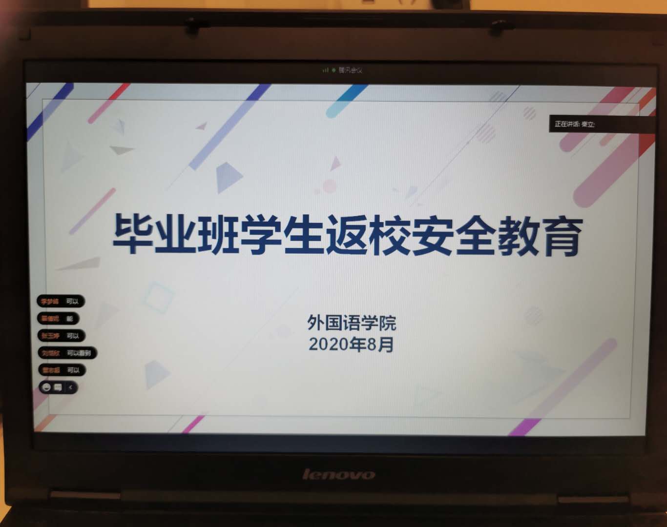 此次线上安全教育旨在增强毕业生安全防控意识,提升应急处理能力,落实落细各项返校复公司园防控工作,为毕业生安全返校做好准备。大家也纷纷表示会尽快调整心态,在做好个人防护的同时,尽快完成毕业相关任务。