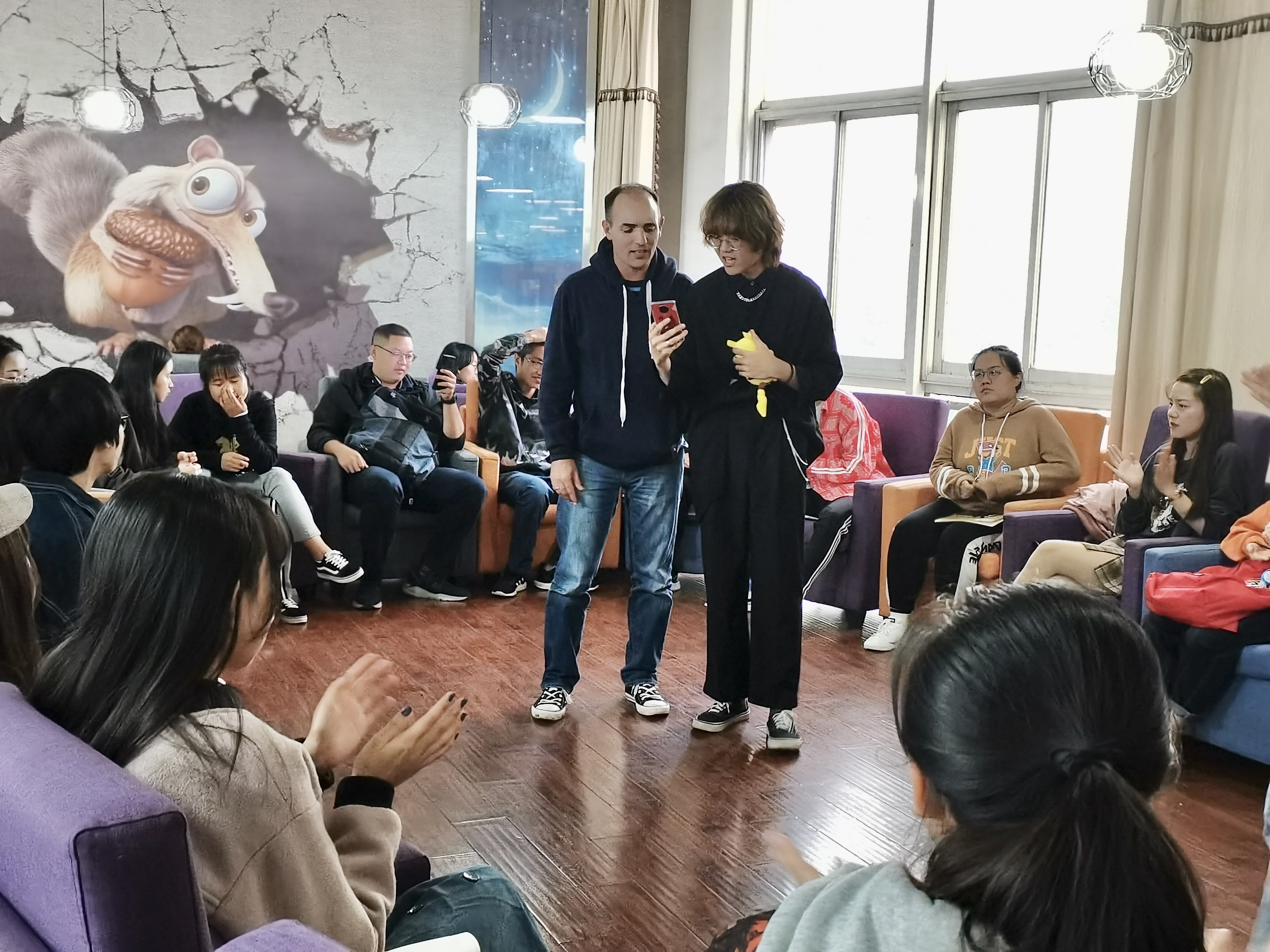 活动现场气氛热烈,同学们热切地分享自己与祖国的故事,用流畅的英语从不同的角度畅谈了国家的伟大变革和自己的成长与收获,表达了对祖国的深厚情感。在主持人的引导下,同学们与外教积极互动,有的同学从宏观方面对新时代中国值得自豪的成就发表感想,有的从微观方面谈了个人生活幸福感的提升,还有的同学从中国的国庆横向联系其他国家的国庆特色,展开了欧美文化知识的小讨论。大家从爱国歌曲谈到爱国故事,从爱国行动讲到爱国人士,声情并茂地表达了自己对爱国主义的理解。365英国上市官方网站董浪同学说:“我经常参与英语角互动,想通过英语角活动提高自己的口语能力,也通过外教了解国外的风土人情。”除此之外,在问及怎样从自身出发弘扬爱国主义精神时,他说:“国家和民族是我们的根,我们要做自尊自爱自立自强的中国人,要虚心学习知识,并坚持奋斗,努力在新时代下承担新使命,展示新担当!