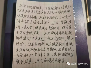 宣讲结束后,各位同学也思绪颇多,大家自己分组进行了讨论,写下自己的感悟。大家纷纷表示“国当盛世念党恩,百年博济颂丹心。”