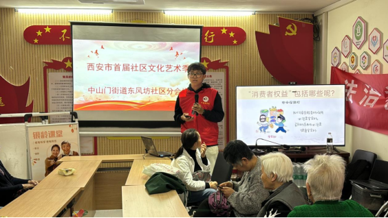 在讲授《民法典》关于消费者权益保护法的内容中,团队成员向老年人科普了作为消费者拥有的权益,讲解了他们可能遇到的消费陷阱,并通过真实案例分析,提醒老年人警惕保健品市场的虚假宣传和诈骗行为。