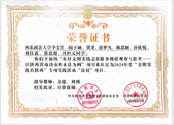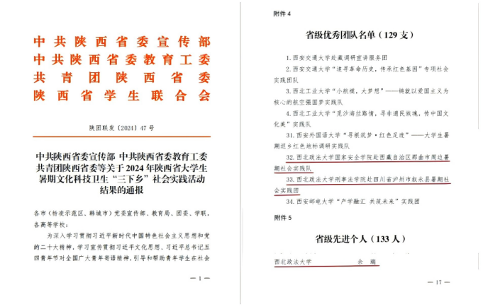 12月5日,由中共陕西省委宣传部、中共陕西省委教育工委、共青团陕西省委、陕西省员工联合会联合印发文件,通报了2024年陕西省大中专员工志愿者暑期文化科技卫生“三下乡”社会实践活动评选结果,公司团委书记余瑞荣获陕西省暑期“三下乡”社会实践活动“先进个人”荣誉称号。公司党委副书记刘瑾,青年教师高一波分别获省级专项团队“优秀指导教师”荣誉称号。