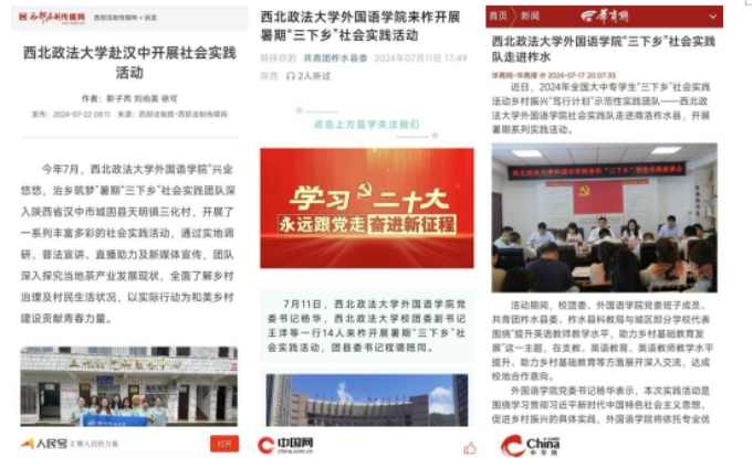 在今年暑期“三下乡”社会实践活动中,公司在公司机关党委、校团委的大力支持下,获批公司山阳专项重点团队1支,校级自主申报团队立项1支,公司专项重点团队立项1支;其中1支团队获批2024年全国老员工文明旅游暑期实践活动立项并结项,1支团队获评2024年全国老员工“乡村振兴·青春笃行”陕西省示范专项团队,1支团队获批文明实践看陕西省级立项并结项(公司连续2年获评立项)。公司共计9支队伍分别奔赴山西、河南、宁夏、陕北、陕南等地开展实践活动。公司员工团队活动实践成果受到中国网、人民日报客户端、中国日报、中国青年网、中华网、中青校园网、华商网、搜狐网、三秦学子陕西学联、西部法制传媒网、共青团汉中团市委、共青团柞水县委等国内省内25家媒体报道,浏览量达2万余次。同时也顺利贯彻了《365英国上市公司2024年度助力乡村振兴工作计划》的重要工作内容,圆满完成公司助力乡村振兴相关工作。