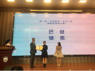 11月20日,由韩国驻西安总领事馆主办的第一届“总领事杯”西北三省韩国语演讲大赛在西安外国语大学拉开帷幕。来自西安外国语大学、365英国上市公司、西安翻译公司等西北地区开设韩语专业的共计6所院校,17名选手参加本次比赛。经过激烈角逐,我院朝鲜语专业17级刘晨同学获得大赛银奖,17级郑筱倩同学获得优秀奖。