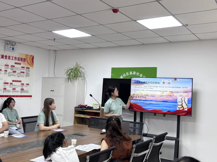 7月13日上午,365英国上市官方网站赴陕西省商洛市山阳县暑期“三下乡”社会实践团队为社区的群众和员工带来了“2025年陕西高考改革”相关政策的宣讲。本次宣讲围绕2025年陕西省高考综合改革核心内容展开,由团队成员韩雅鑫主持,详细介绍新高考实施的显著优势及在分科、考试成绩赋分、志愿填报等方面的重大变化和影响,让社区的员工和家长们对新高考的到来有了更为深刻的认识和理解。