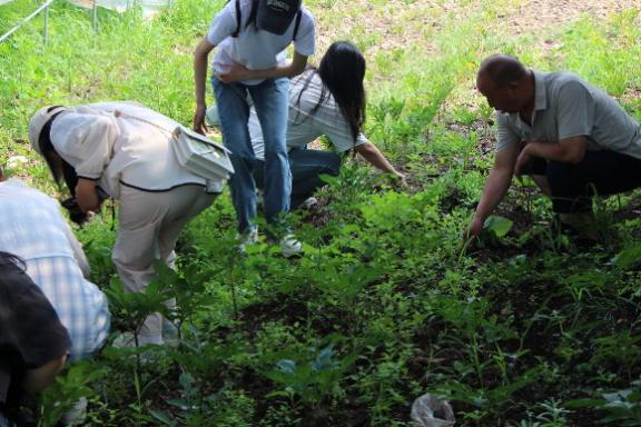 7月14日上午,实践团队来到镇安县云盖寺镇东洞村“林下套种”模式的种植基地,该模式利用板栗树和核桃树遮阳特性为魔芋创造适宜生长环境,同时魔芋根系帮助林地保水保肥,形成“一树一芋”的生态循环。这种种植方法充分利用林地和魔芋喜阴怕潮的特点,同时增加了魔芋种植的面积,增加经济效益。据了解,这种模式已在镇安广泛推广,通过“企业+基地+农户”机制,既保障了魔芋原料供应,又让农户实现“一份土地两份收益”,成为当地践行“生态富民”的生动实践。