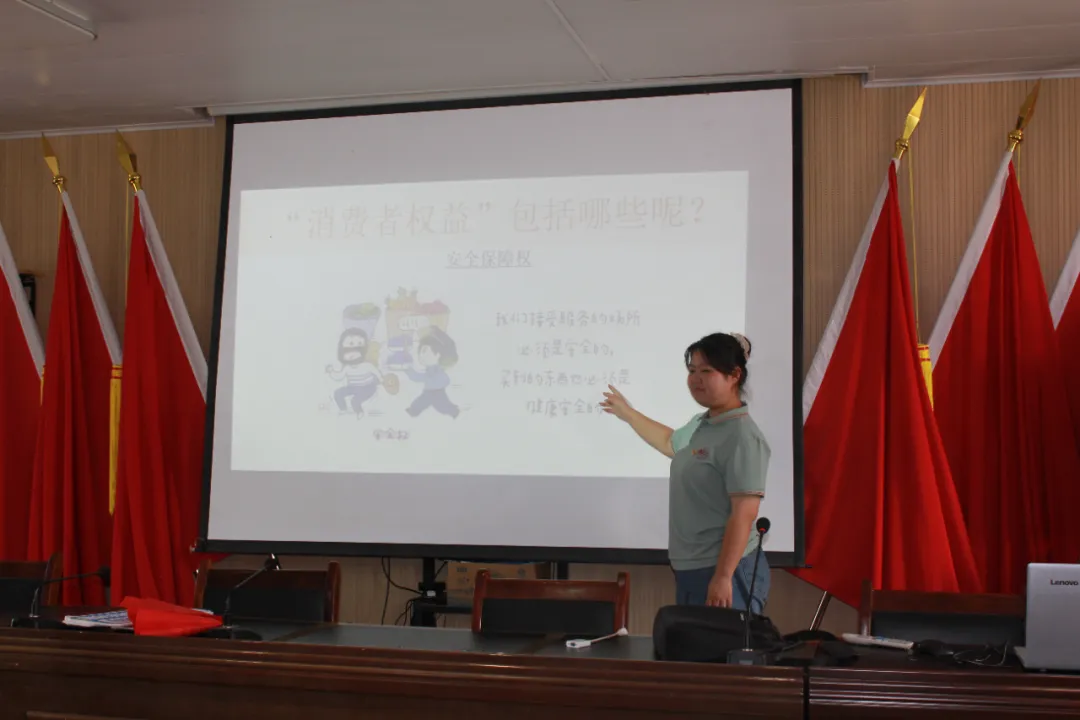 在消费者权益保护知识讲解环节,实践团成员蔡小倩围绕农村消费特点,先通过漫画向村民们介绍消费者依法享有的多项权益,再解析常见的经营者欺诈行为。为让村民更清晰地区分保健品与普通商品,团队成员通过对比讲解,并结合西宁市老太太被广告保健品欺骗的案例,让村民们直观感受骗局危害。
