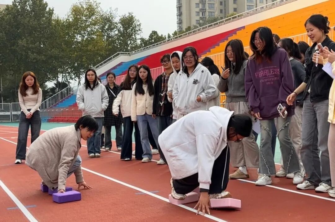当阳光撞进活力满满的赛场,当协作的呐喊穿透云霄,一场集趣味与挑战、成长与收获于一体的综合素质拓展活动,在欢声笑语中拉开了帷幕。率先开始的是“单词小火车”活动,该活动要求通过单词接龙变换队形移动,依照总用时排序积分排名。3个班的同学们凭借着扎实的单词功底在该活动中大显身手,口中迅速流利吐露的单词正彰显着外院学子的飒爽“英”姿!