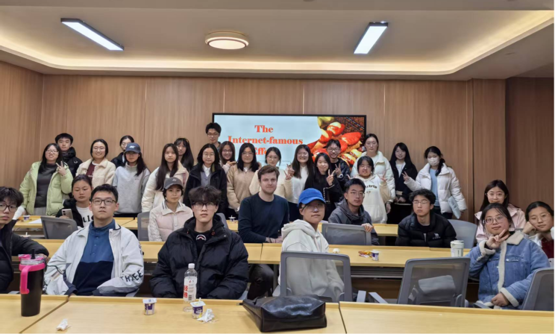 活动伊始,主持人以“英文名竞猜”的破冰游戏点燃现场气氛,介绍了淄博烧烤、景德镇“鸡排哥”等热点带来的网红效应,并引导同学们分享与其相关的亲身体验。外教Cameron也分享了自己在武汉,长沙的有关“打卡”网红景点的经历,现场欢笑不断.
