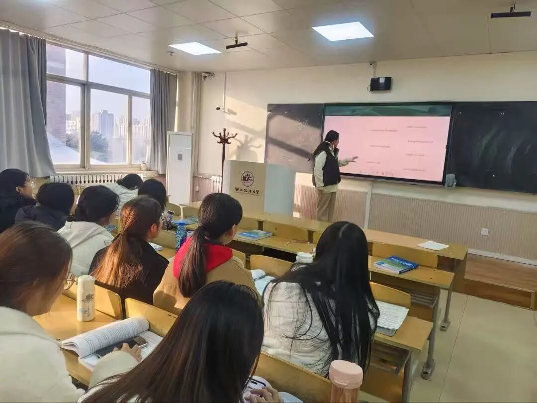 活动中,学习委员韩雅鑫带领班级同学进行全科目考前带背,针对外语专业核心的词汇、语法、翻译、写作等模块,梳理高频考点与易错知识点,带领同学们逐科系统回顾,巩固记忆并串联知识体系。班长徐嘉鞠针对期末复习的重难点,结合课程要求,向大家分享复习规划,引导同学们对个人复习情况进行交流探讨,提升复习针对性与实效性。