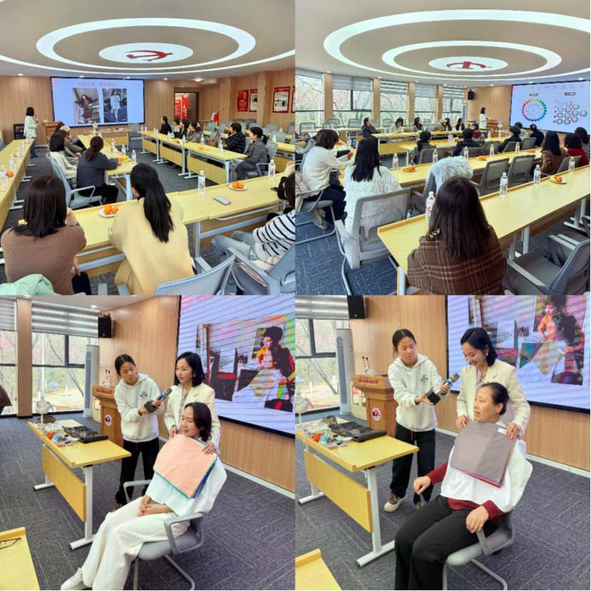 本次讲座公司特别邀请到资深形象管理师、色彩搭配师、礼仪讲师、搜狐视频签约博主胡楠。她从个人形象气质提升、职场形象打造角度出发,主要讲解了色彩美学、色彩搭配、个人风格与气质塑、职场礼仪等,并为每位老师进行了职业风格匹配与色彩搭配。现场气氛轻松愉快,活跃度高,让在场教职工真切感受到职业气质打造的独特魅力