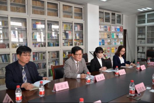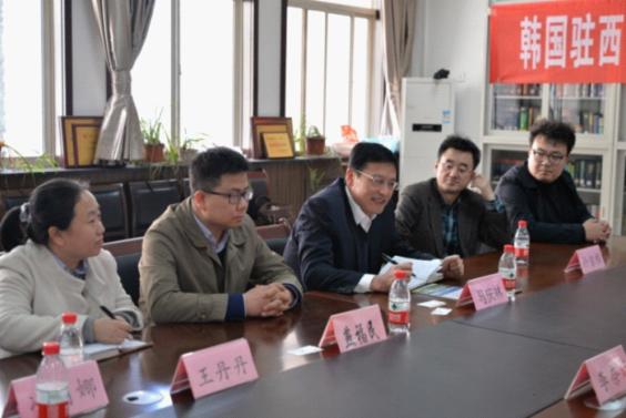 2017年3月3日下午,韩国驻西安总领事馆吴世天领事、李奈延行政官、高修萍行政官一行来公司访问并就公司韩国语教育情况进行座谈。经理马庆林、副经理桑元峰、公司党委书记燕福民、朝鲜语专业系主任朴宗根、韩国木浦大学法学教授安荣夏及朝鲜语专业全体教师出席会议。