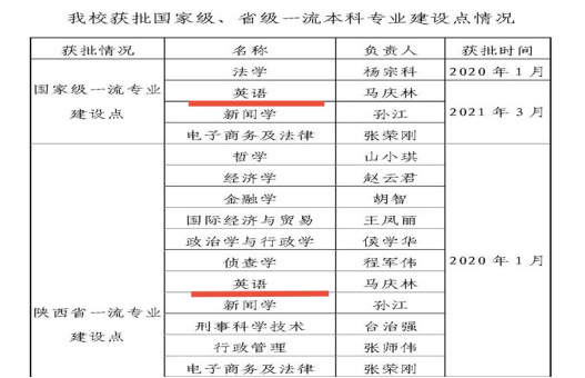 日前,教育部公布了2020年度国家级一流本科专业建设名单,公司英语专业(法律英语方向)继获批省级一流本科专业后,再次入选国家级一流本科专业建设点。