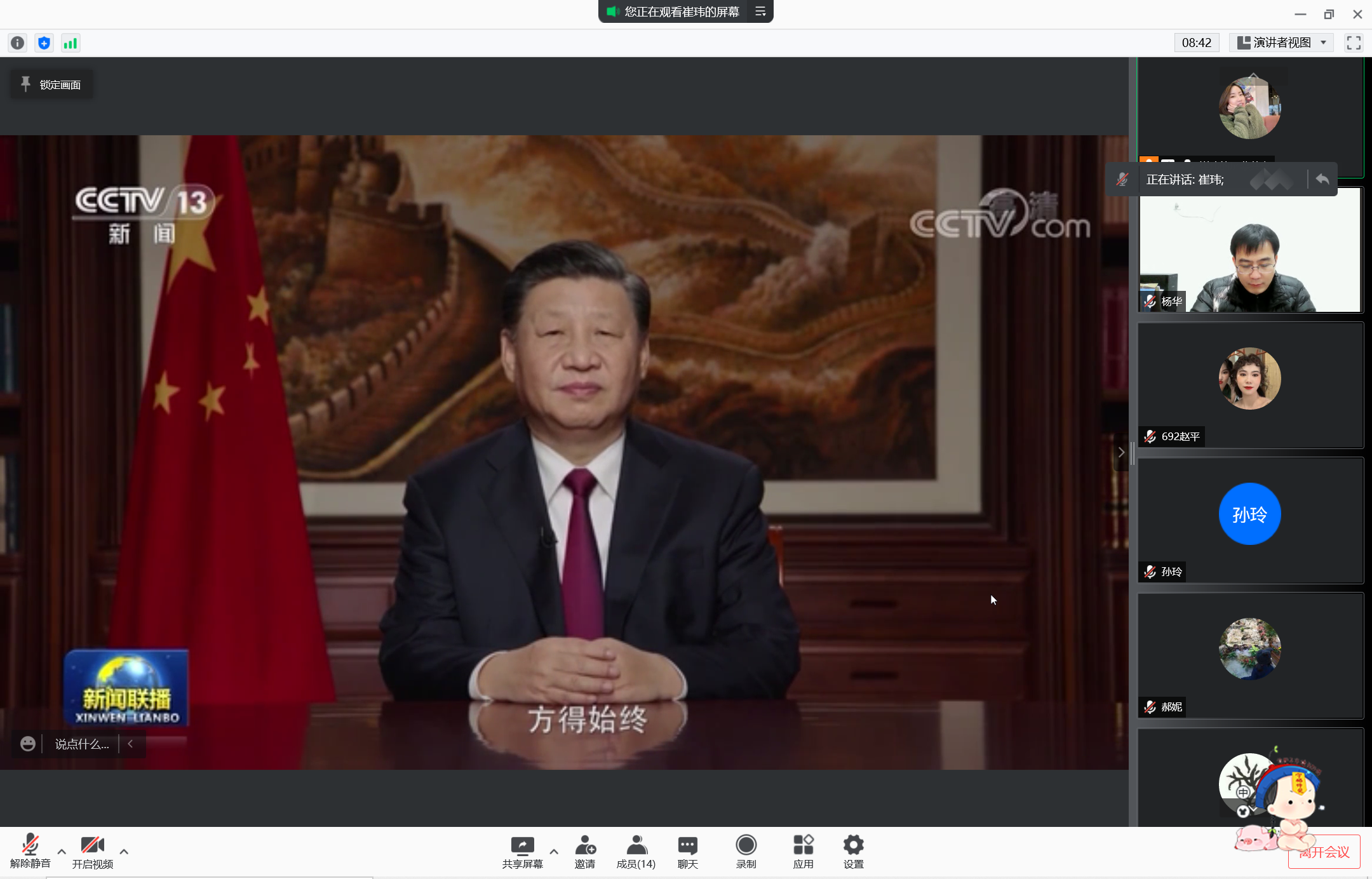 参会成员就学习内容展开了交流研讨。大家一致认为,习近平总书记2022年新年贺词深情回顾中国共产党百年奋斗的光辉历程,着眼实现中华民族伟大复兴的宏伟目标,深受鼓舞、倍感振奋。要增强“四个意识”、坚定“四个自信”、做到“两个维护”,深刻理解习近平总书记重要讲话的精神实质、丰富内涵,深刻领会“两个确立”的决定性意义。