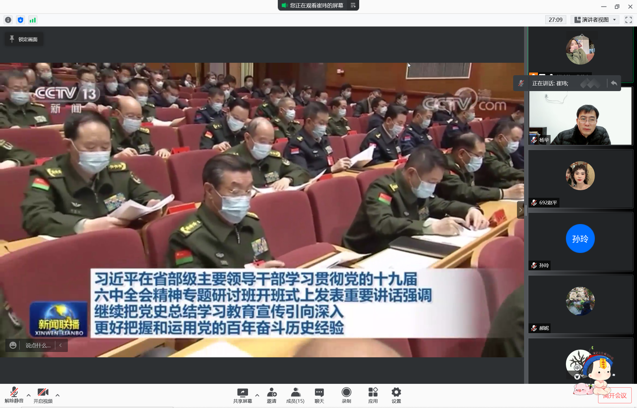 会议集中学习了习近平总书记2022年新年贺词和在省部级主要领导干部学习贯彻党的十九届六中全会精神专题研讨班开班式上的重要讲话精神。杨华传达了全省教育系统疫情防控调度视频会议和1月12日公司党委会(扩大)精神,部署公司近期工作安排。