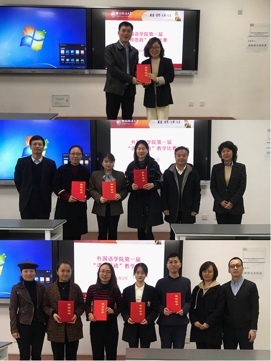 参赛教师分别通过说课和授课环节具体展示了如何将思政育人融入外语公司产品的具体实施环节,结合大学英语、专业英语的课程特色,深入挖掘现有教材中的思政教育元素,融入习近平新时代中国特色社会主义思想、优秀传统文化、公司红色基因等教学素材,展示了各具特色的教学设计和教学风采。经过近5小时的激烈角逐与评审,大学英语教研室的李雪老师获得一等奖,田园、俞婷和杨磊老师获得二等奖,曹永谊、包登玉、郭佳、曹湘洁、茹鑫老师老师获得三等奖。