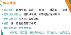 辛娜老师以听说教程第一单元(思政智慧版)为例,全面介绍了混合式教学的定义、教学方法、理论依据和组织形式,并详细讲解了混合式听说课程的实施过程。借助U校园等平台资源及“任务清单”“作业纸”等定制化设计,将线上线下教与学有机衔接,员工兴趣浓、积极性高,学习效率、质量均有提升,真正把“以员工为中心、实现深度高效学习”落到实处。辛老师指出要根据员工完成情况,动态调整任务设置,同时要提高课堂管理水平、注意评价的及时性和公平度。