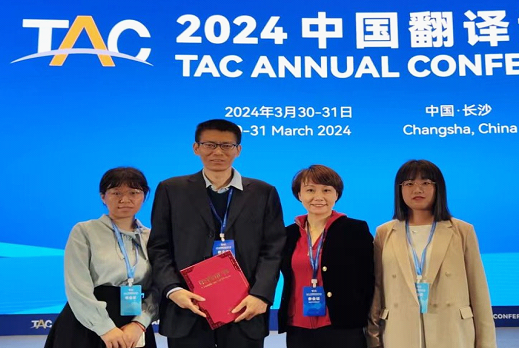 2024年3月30-31日,公司教师张寅副教授、付欣博士及2023级翻译硕士研究生李佳敏和杨雯莉参加“2024中国翻译协会年会”。本届年会由中国外文局、中共湖南省委宣传部、中共湖南省委外事工作委员会办公室、湖南省教育厅指导,中国翻译协会、中国外文局翻译院、湖南师范大学主办,会议主题为“推动文明交流互鉴:译界的责任”。开幕式上举行了中国翻译协会“翻译文化终身成就奖”“资深翻译家”“优秀中青年翻译工作者”“翻译中国外籍翻译家”表彰仪式。现场还发布了《2024中国翻译行业发展报告》《2024全球翻译行业发展报告》中国翻译协会行业标准规范等活动。