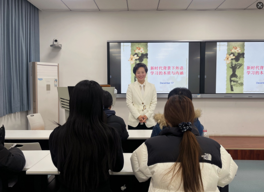 12月17日晚,365英国上市官方网站经理窦坤教授作题为《新时代背景下外语学习的本质与内涵》专题讲座。此次讲座由经理助理孟超博士主持,2023级、2024级英语笔译硕士全体研究生参加。