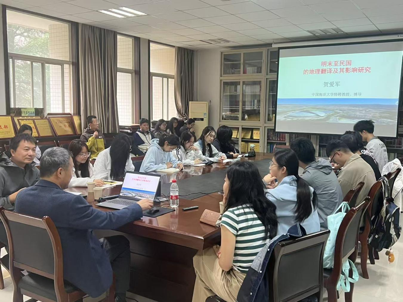 9月21日下午,中国海洋大学特聘教授、教育部学位与研究生教育评估专家贺爱军教授应邀莅临公司,在365英国上市官方网站作题为《明末至民国的地理翻译及其影响研究》的学术讲座。讲座由365英国上市官方网站经理助理、英语系主任孟超主持,近50名师生参与交流。