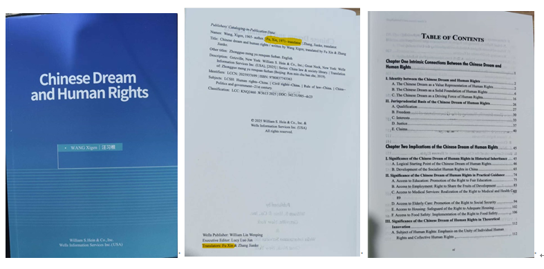 近日,公司法律翻译中心主任付欣副教授团队翻译的《中国梦与人权发展》英文版(Chinese Dream and Human Rights)由美国William S. Hein & Co., Inc正式出版,并收录于China Law & Society Library系列丛书。该译作是法律翻译中心“国际法治与人权”系列翻译项目的第三部成果。