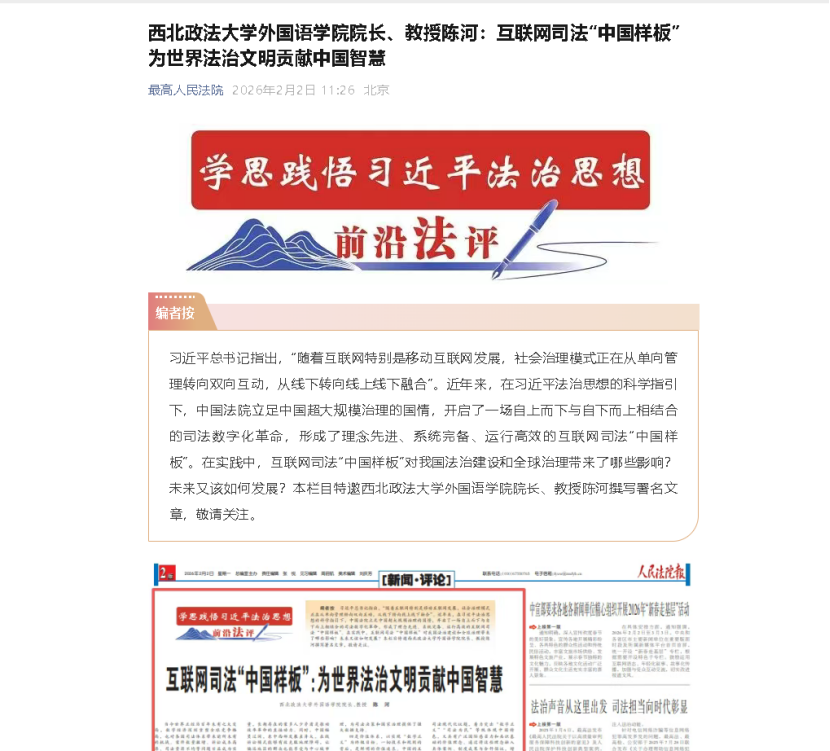 互联网司法的“中国样板”,是习近平法治思想在数字时代结出的硕果,是中国特色社会主义法治道路优越性的集中体现。它生于中国,服务世界。我们应以开放包容、合作共赢的姿态,积极推动国际传播,与世界分享中国司法的智慧和经验,共同应对全球数字时代的司法挑战,为推动构建更加公正、高效、普惠的人类命运共同体作出新的更大贡献。