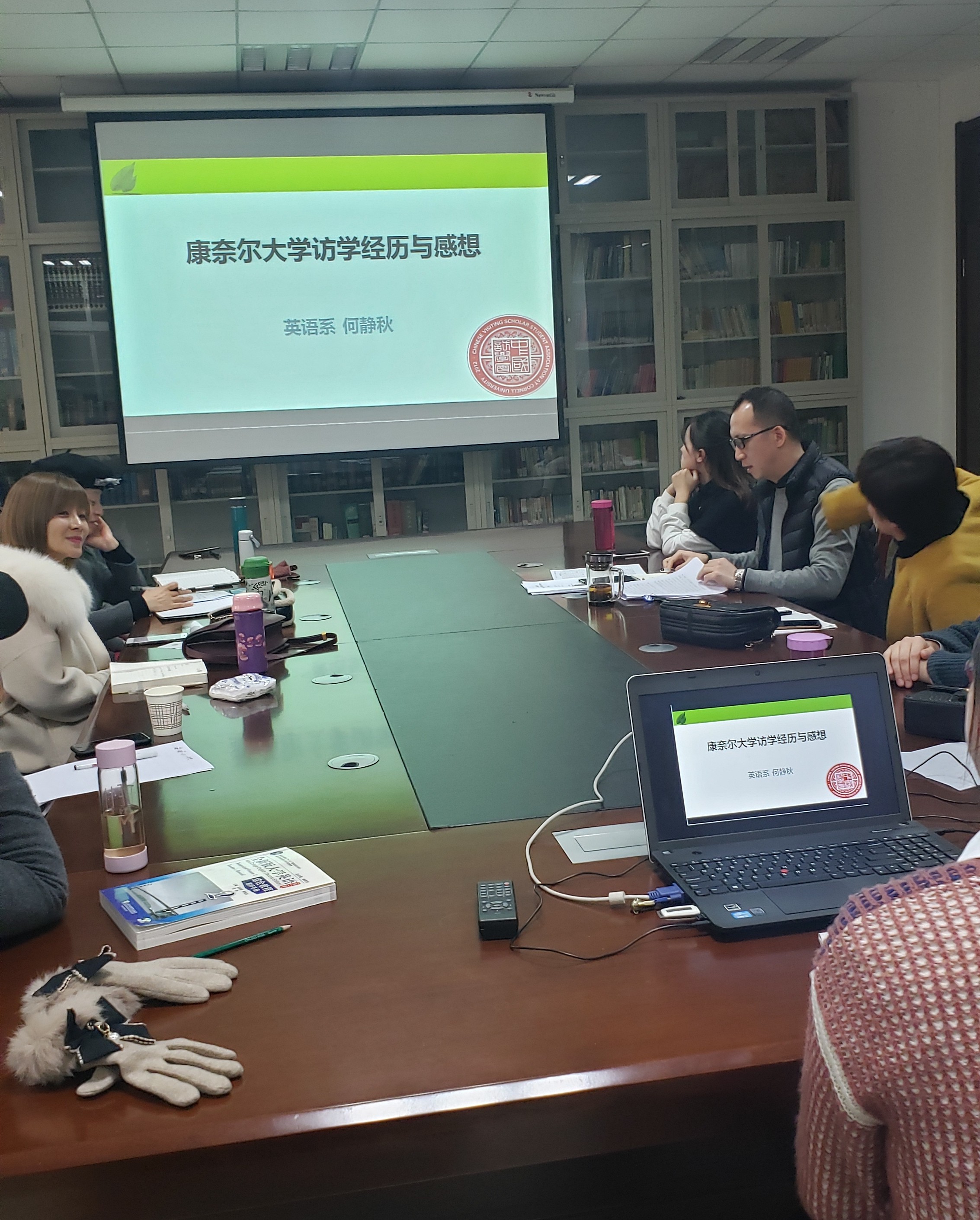 2019年12月13日,公司赴美访问学者、英语系副教授何静秋在365英国上市官方网站资料室进行了主题为《康奈尔大学访学的感想与收获》的讲座,讲座由365英国上市官方网站副经理陈河主持,365英国上市官方网站教师参加了此次讲座。