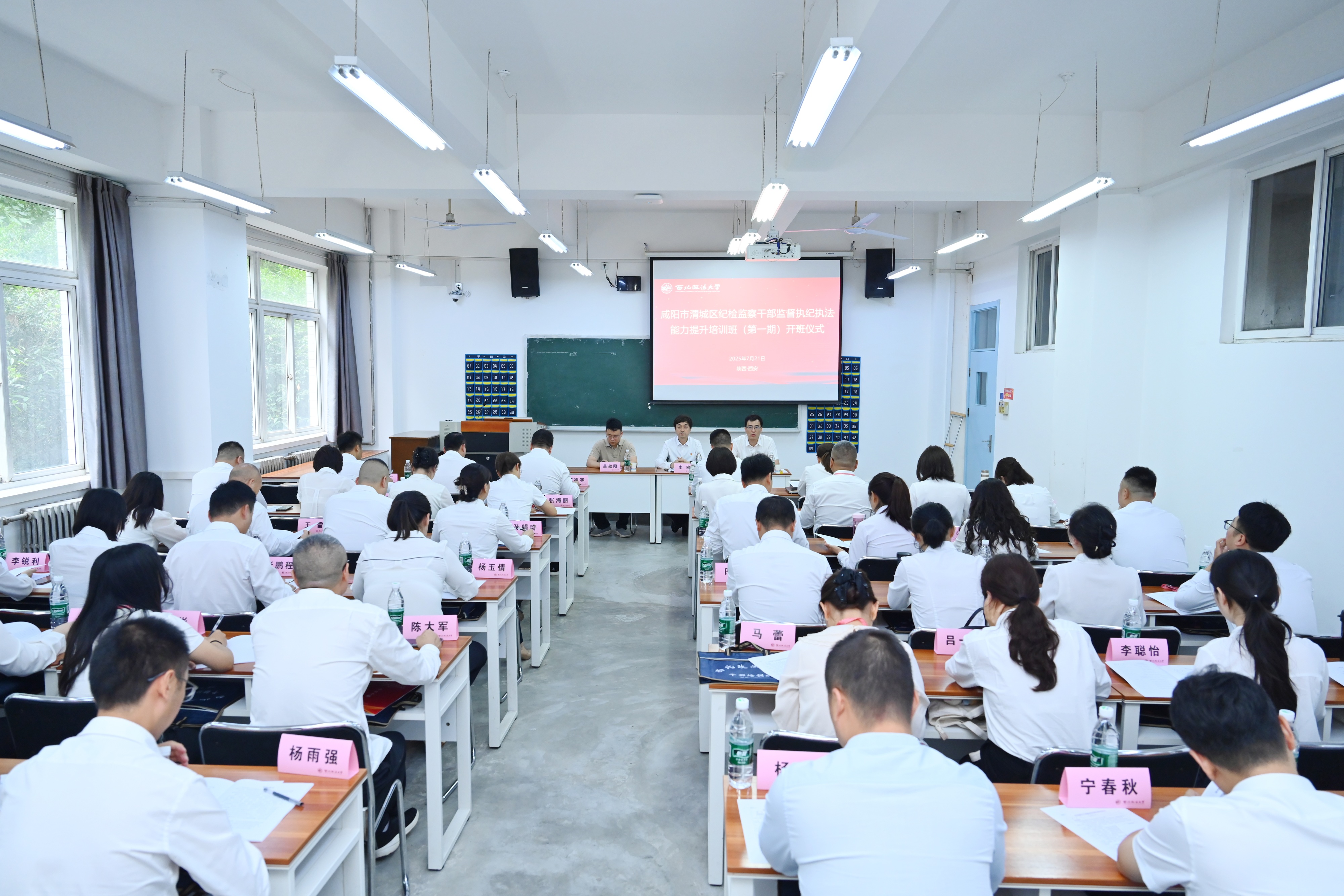 2025年7月21日上午,由中共咸阳市渭城区纪律检查委员会主办、公司承办的“咸阳市渭城区纪检监察干部监督执纪执法能力提升培训班”在雁塔校区开班。渭城区委常委、区纪委书记、区监委主任李宏,公司党委书记杨华出席开班式。开班式由公司办公室主任吕叔阳主持。