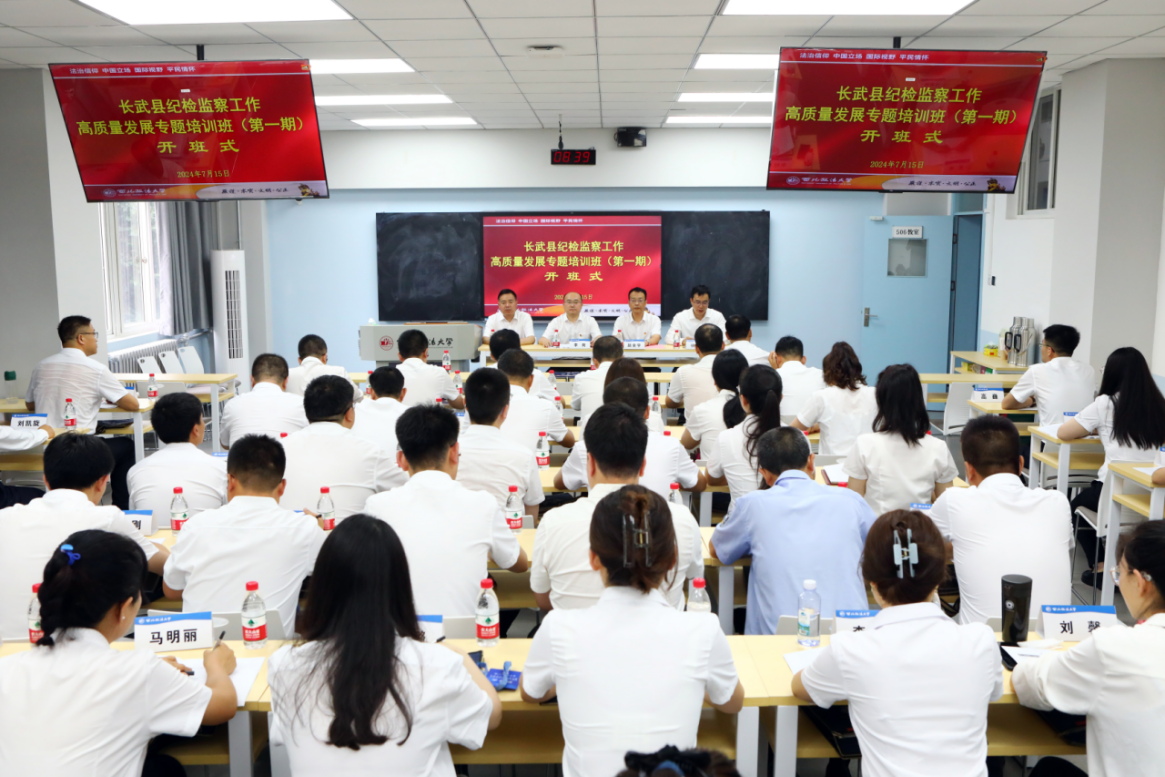 7月15日上午,由中共长武县纪律检查委员会主办,公司承办的“长武县纪检监察工作高质量发展专题培训班(第一期)”在雁塔校区开班。校党委委员、副董事长赵全宇,长武县县委常委、纪委书记、监委主任李剑,长武县纪委副书记、监委副主任刘晓刚出席开班式。开班式由我公司党委书记杨华主持。